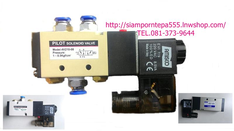 4V210-08 "Amisco" Solenoid valve 5/2 Ways Size 1/4" ไฟ 12v 24v 110v 220v Pressure 0-10 Bar ส่งฟรีทั่วประเทศ